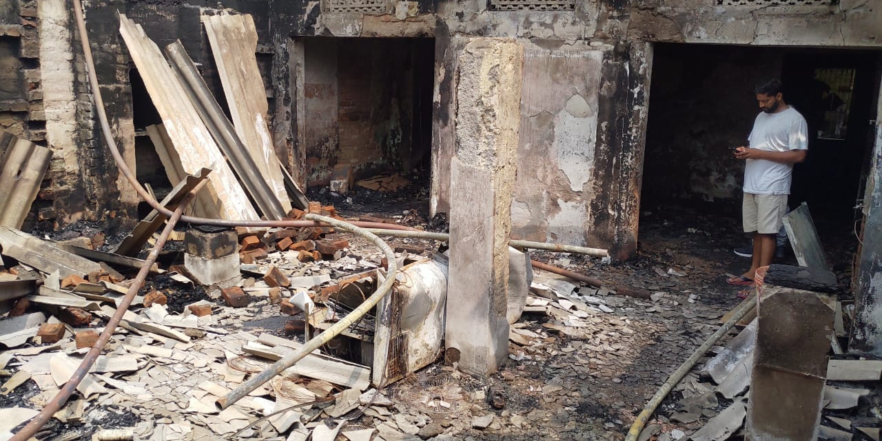 राजगीर लेदुआ पुल स्थित राजगीर सुपरमार्केट मिनी मॉल में बीते रात्रि आग लगी की घटना में 20 लाख रुपए से अधीक की सामान जलकर हुई राख